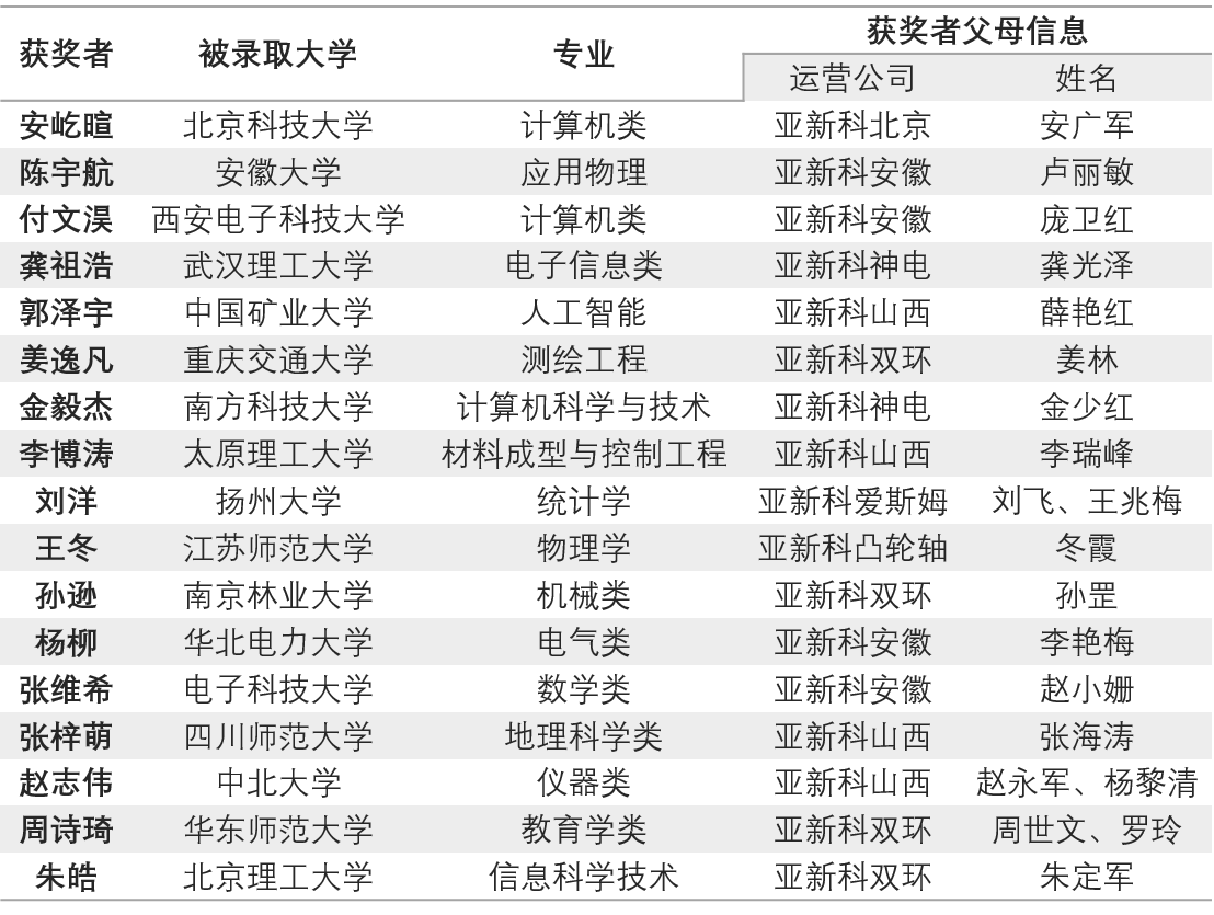 “亚新科李克平奖学基金”旨在为符合资格的亚新科员工子女提供资助,以鼓励他们在高等院校致力于理工科专业方面的学习,为投身于中国科技的发展做好准备。