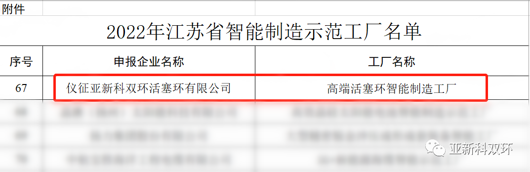 2022年4月8日,亚新科双环凭借《高端活塞环智能制造工厂》申报项目,经过地方审核、形式审查、专家评