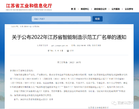 审、综合评价、专题会审、网上公示等程序,成功入选江苏省智能制造示范工厂。在江苏省工业和信息化厅公布的2022年度江苏省智能制造示范工厂名单中,全省共有86家企业入选。