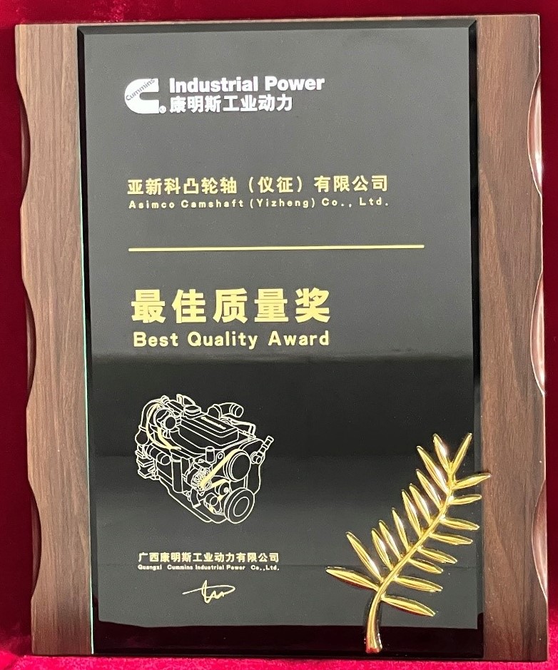 尽管过去的一年里困难不断,但亚新科凸轮轴依托严谨的质量管理体系,“0缺陷”的质量管理理念,全力以赴,保质保量,按时交付,得到了广西康明斯(GCIC)的充分肯定,荣获2021年度“最佳质量奖”!