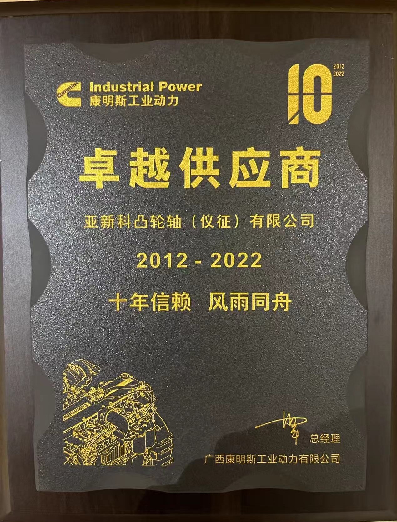 一如今年5月,广西康明斯为亚新科凸轮轴颁发“2021年度最佳质量奖”时所写到的:“面对日趋激烈的竞争,他们勇于创新,严把质量关,把质量视为公司的生命线,为广西康明斯呈现了高品质的产品,为巩固广西康明斯的品牌形象创下了傲人的成绩。”