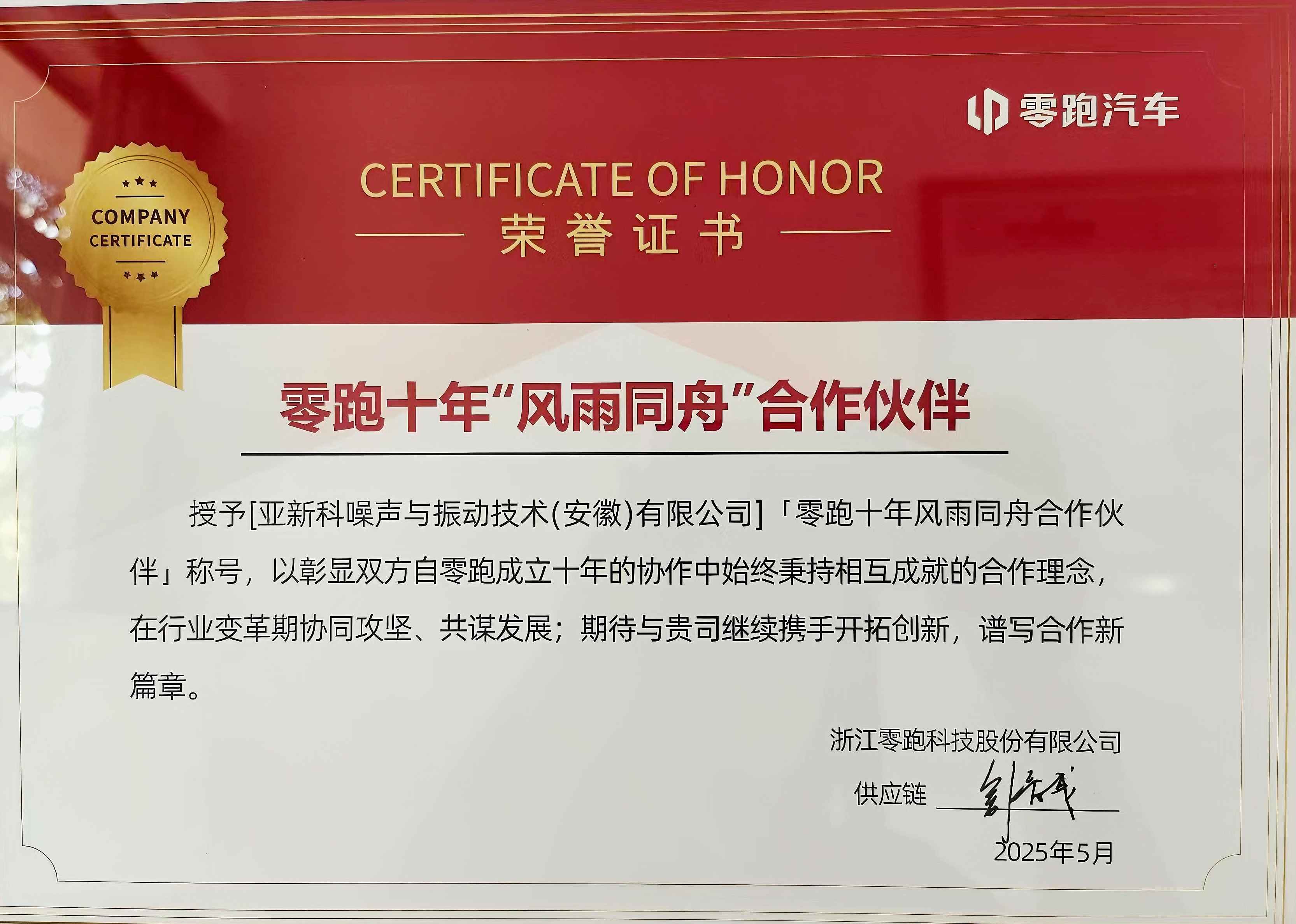 亚新科安徽凭借卓越的产品质量与技术创新,荣获零跑汽车“风雨同舟合作伙伴”称号。